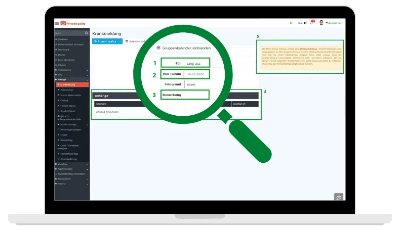 - In diesem Feld kann definiert werden, dass Mitarbeiter auch für Kollegen eine Krankmeldung einreichen dürfen