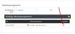 Wenn das Wochenprogramm ab sofort geändert werden soll, kann im rot markierten Dropdown Menü das neue Wochenprogramm ausgewählt und per Klick auf Speichern festgelegt werden.