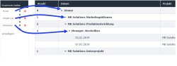 gruppierenden Spalte sortiert (in diesem Fall "Projekt"). Ist man in der