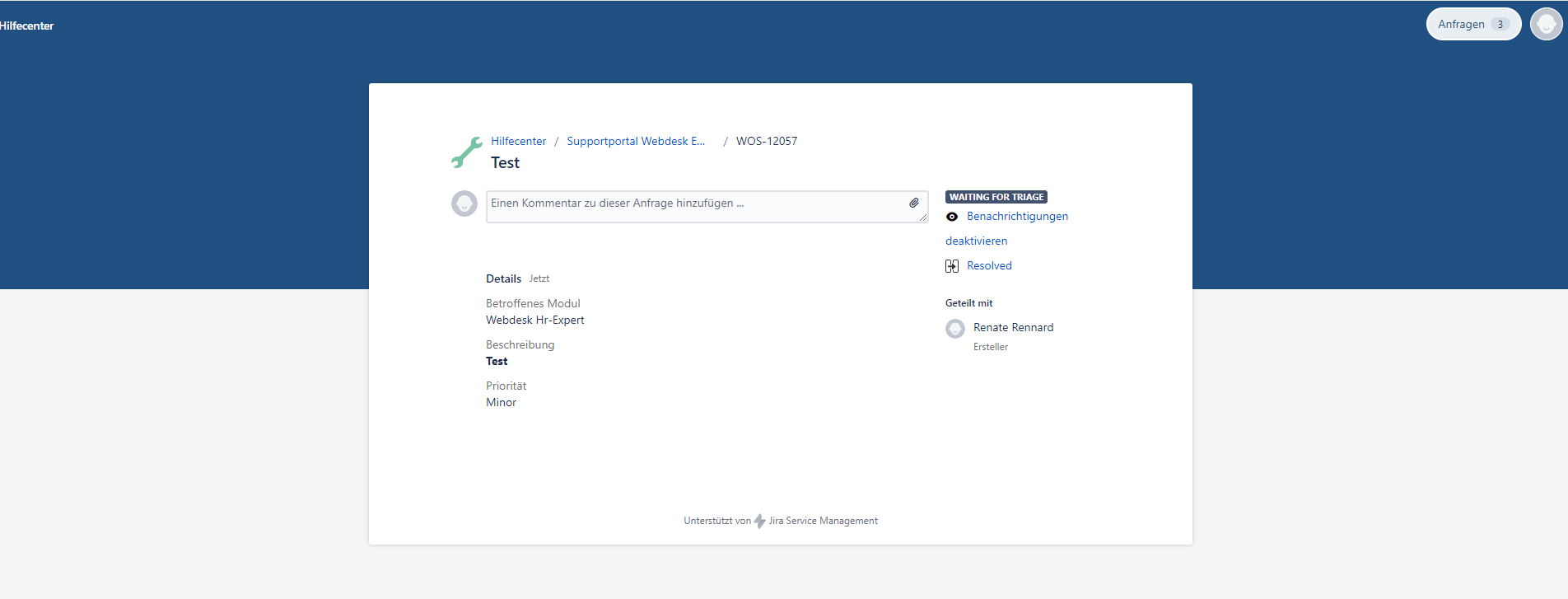 Click on Help Center at the service desk! There you have the choice between the Personalwolke service desk and the service desk for the web desk.