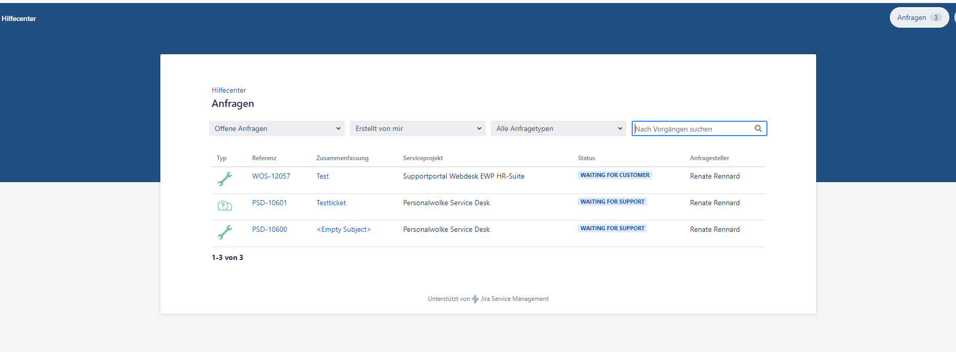 In the next display you will see the view of the Personalwolke Service Desk, as showen above.