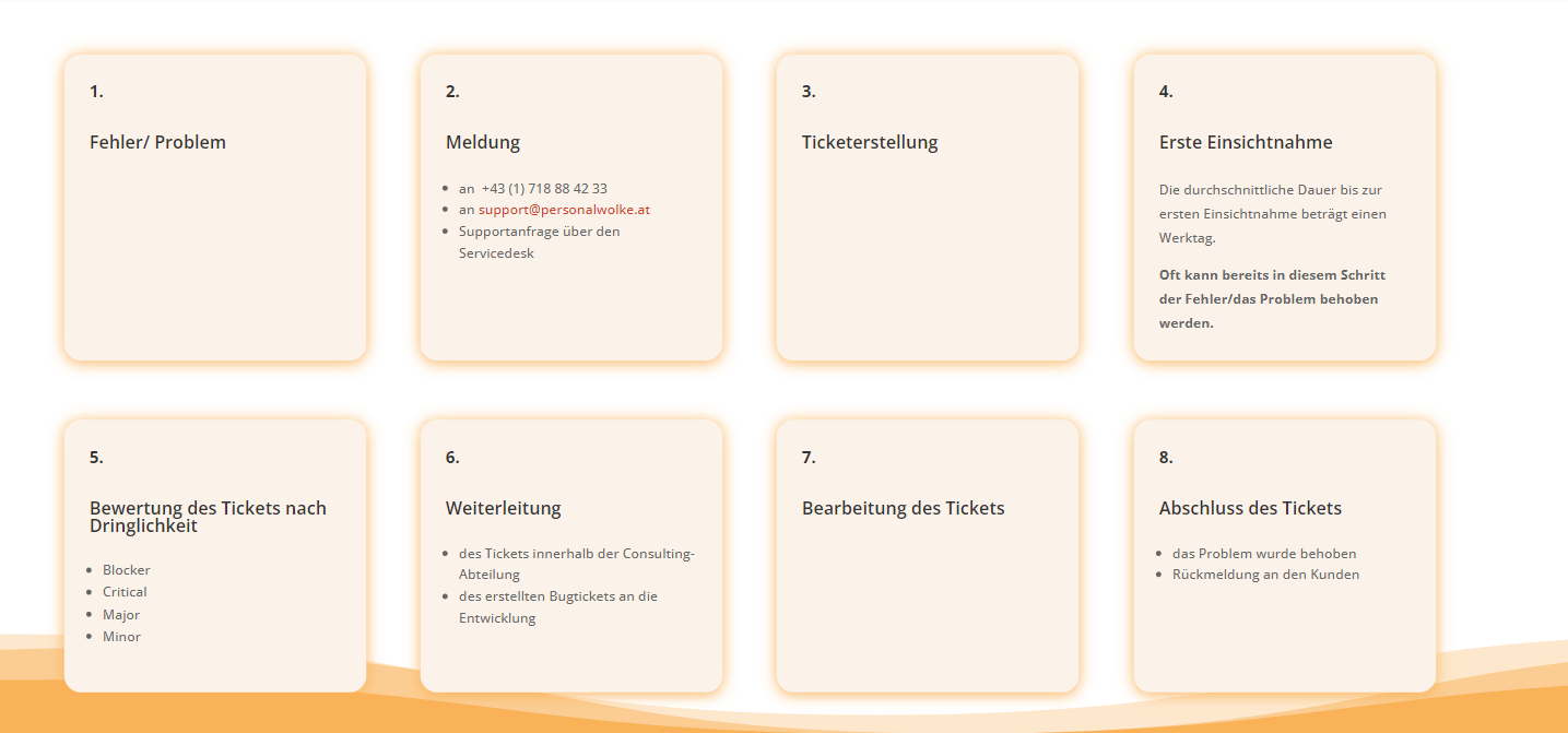 At https://personalwolke.at/support/ you will find further information, as well as an illustration of the process steps involved in processing a ticket: