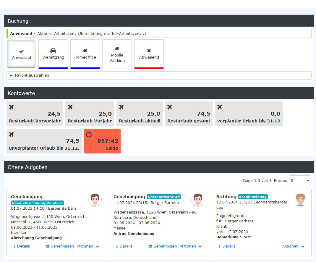 Abwesenheiten unabhängig vom Status des Antrags angezeigt. Durch Klicken auf