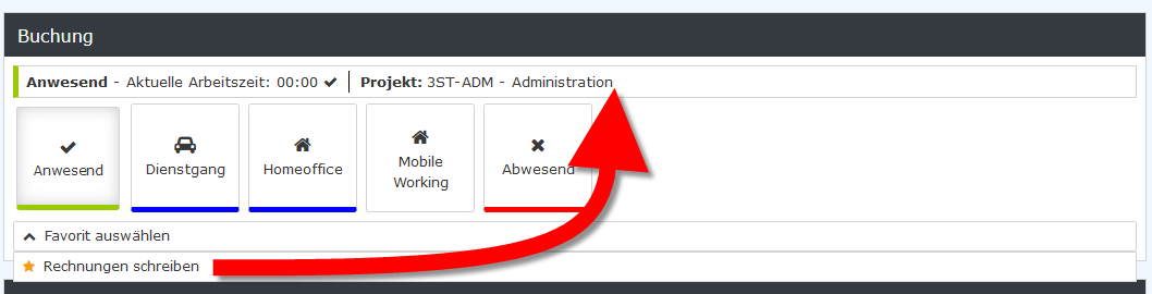 Einbuchung in ein Projekt möglich. (Dies entspricht der Projektzeit-Buchung aus