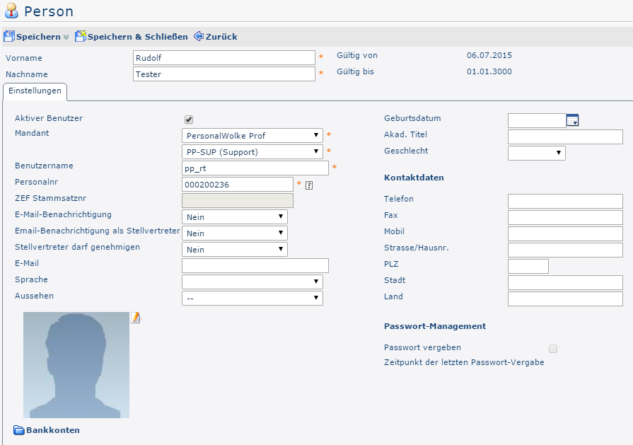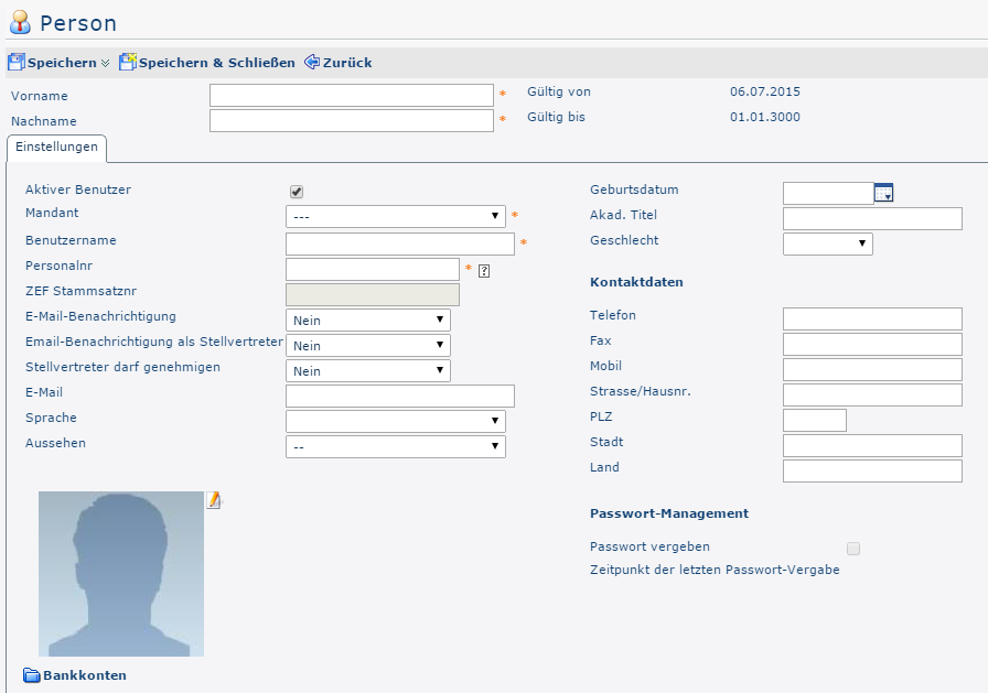 Eine leere Eingabemaske für einen neuen Mitarbeiter. |