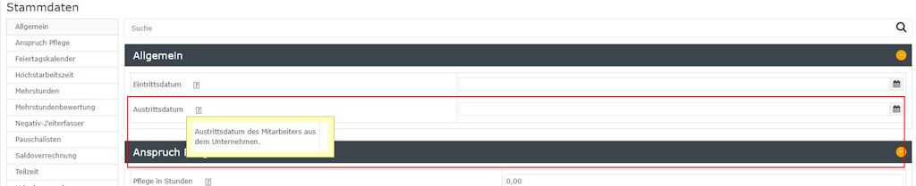 - Enter the leaving date in the "General: Leaving date" parameter in the Settings/ Time recording tab.