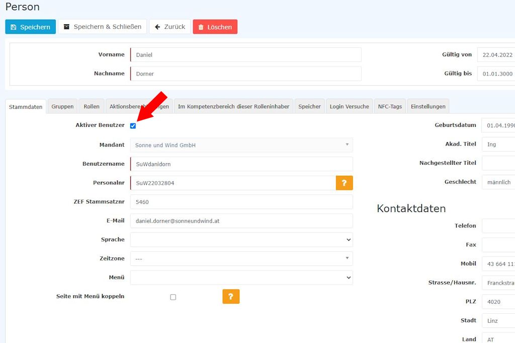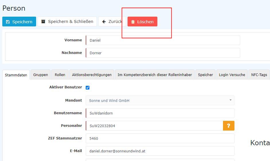 - If you now click on Save, the person leaving will no longer be able to log in to the Personlwolke.