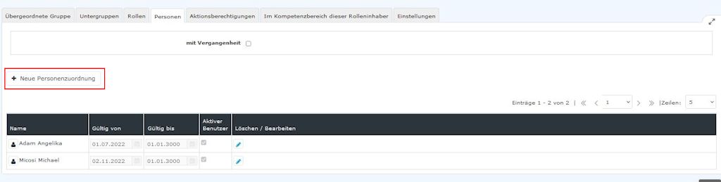 Note: The previous assignment of an employee to a group in the organisation chart is automatically deleted when the new assignment becomes valid.