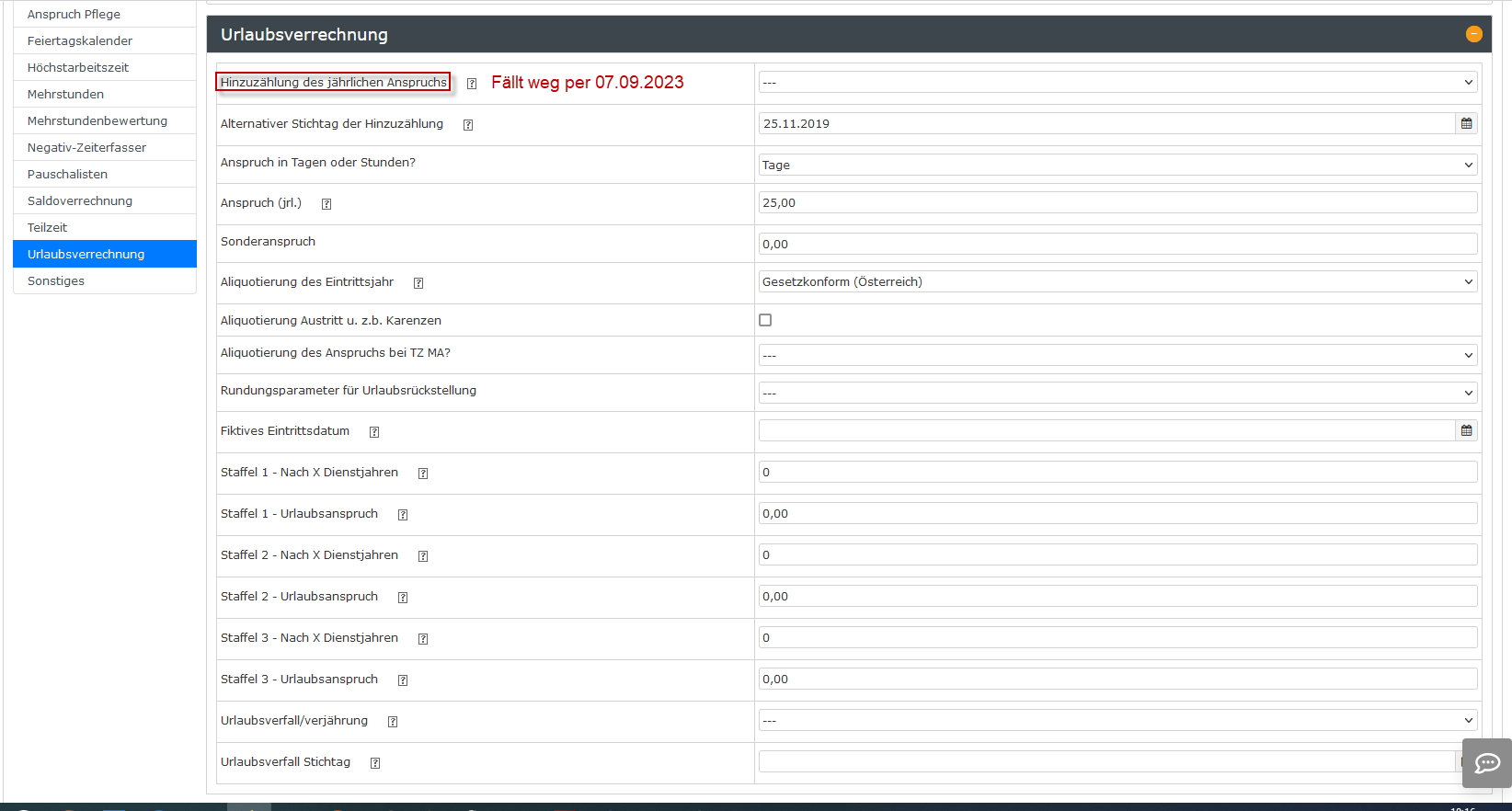 Urlaubsverrechnung: Stichtag Hinzuzählung