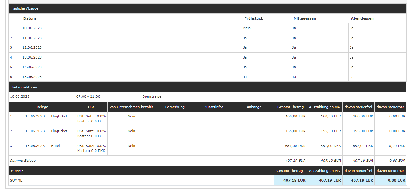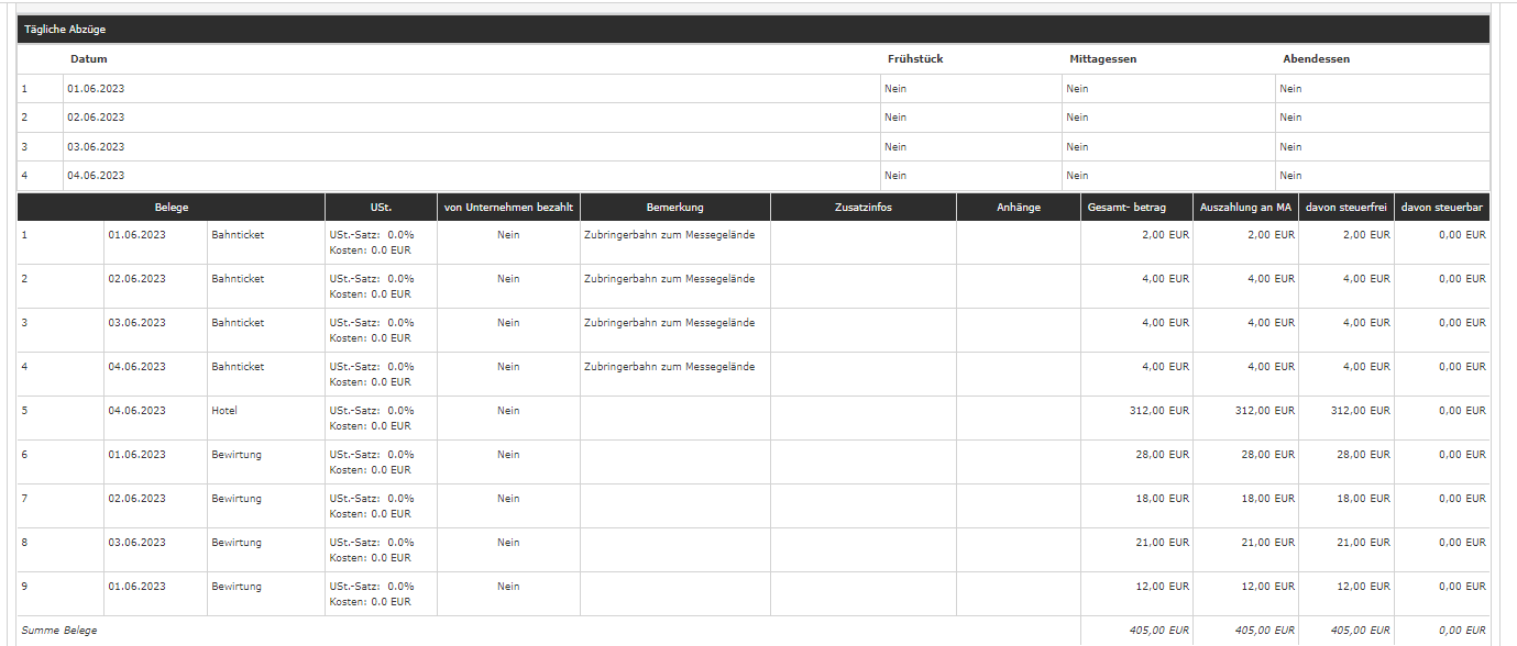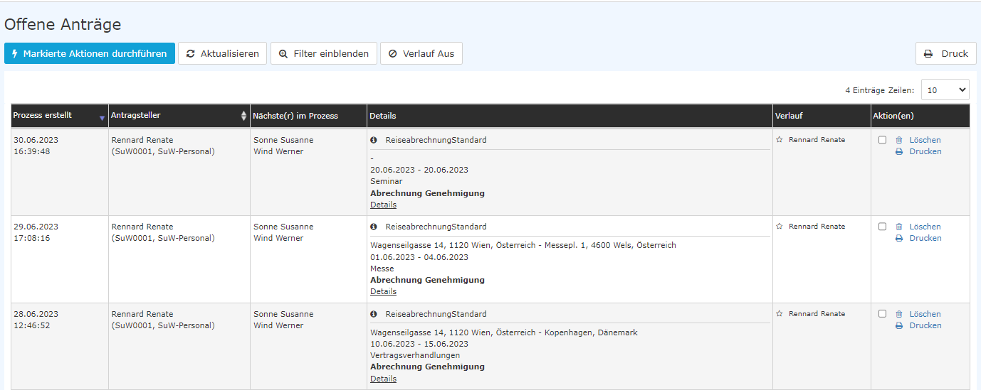 Solange die Anträge zu den Reiseabrechnungen noch nicht genehmigt sind, sind sie unter "Offene Anträge" zu finden.