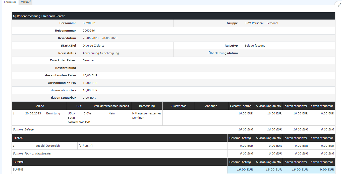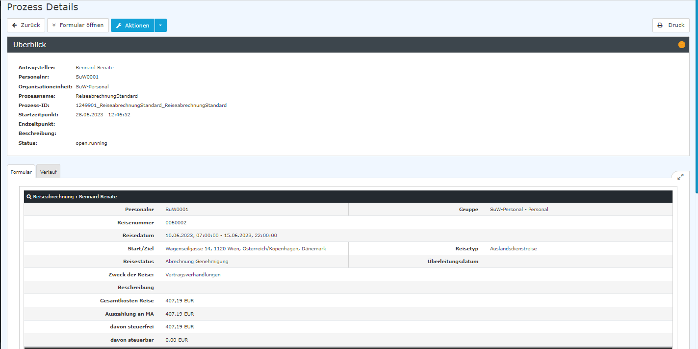 Auch hier kann die Bearbeitung aus den Prozessdetails heraus erfolgen, siehe Inlandsreise