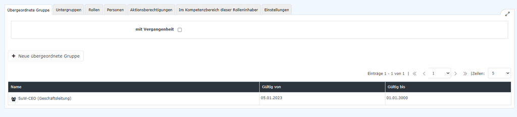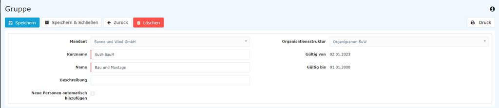 - Gültig von/bis: vom Datum, an dem die Gruppe angelegt wurde bzw. deren Gültigkeitsbeginn bis zum Ablaufdatum