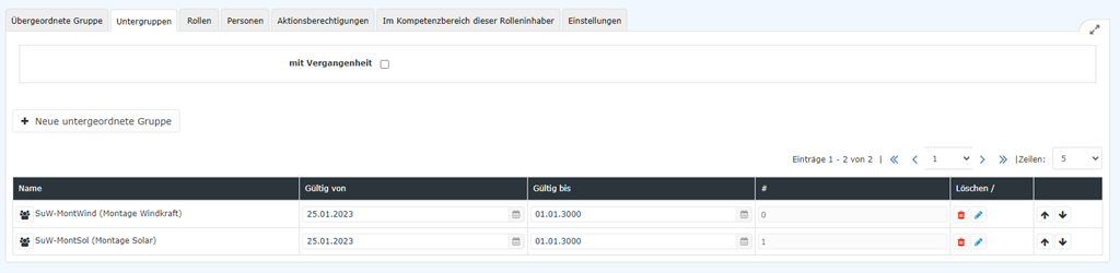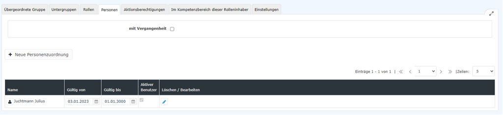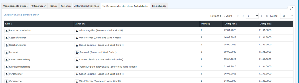 Dieser Reiter zeigt an, welche Rolleninhaber Verantwortung für diese Gruppe