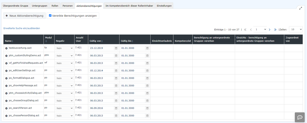 Relevant sind die hier gezeigen Aktionsberechtigungen vor allem in der Kommunikation mit den Systemadministratoren.