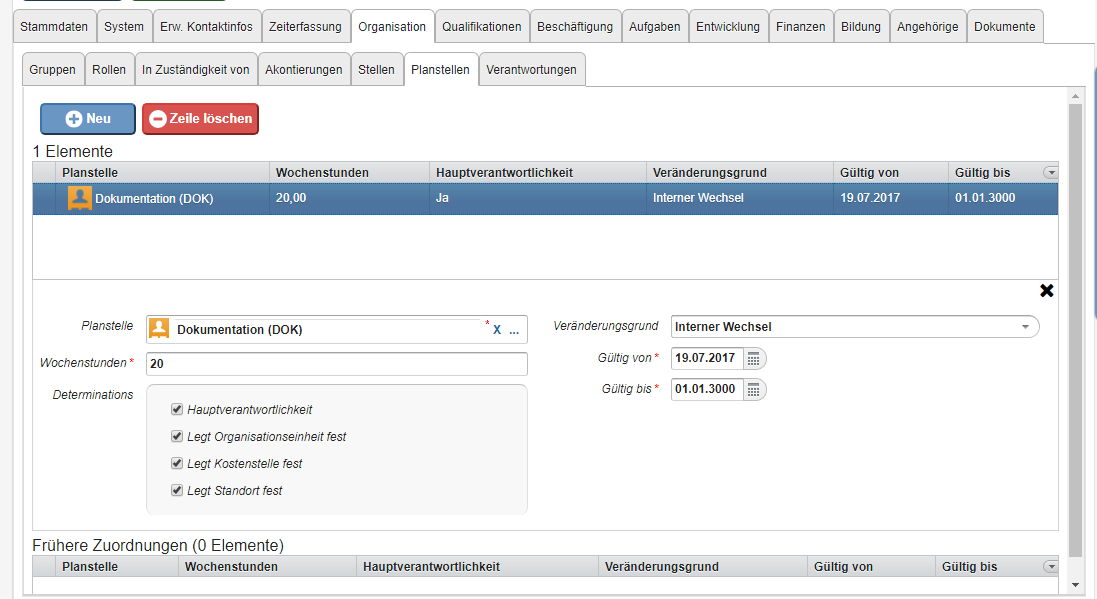 In this case, the employee is assigned one or more (budgeted) position that are then assigned to the organizational unit. A position can be filled by one or more employees, and an employee can also be assigned to more than one position, whereby one of the positions must be flagged as primary.