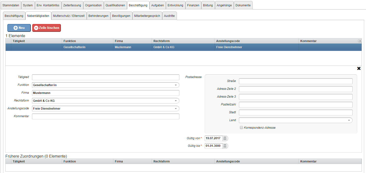 In this tab, you can enter any existing secondary jobs of the employee in historical form.