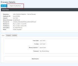 It is possible to open a new form for the specific reason for absence (in this case a special holiday request) directly from the process details view.