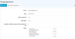 The organizational structure allows the client (company) to be divided into groups (departments), and is the top organizational element for all groups that have the same type. This is usually referred to as hierarchical structures, such as the organizational chart. The hierarchical structures play an important role in the query of various lists and representations (e.g. query of an attendance list, management lists, ...). However, it is also possible to create organizational structures which have no hierarchical relationship to each other, so-called loose groups (see Permission concept).