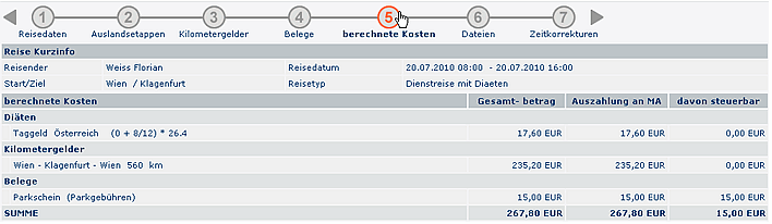 Ist die Dienstreise abgeschlossen, so hat der Benutzer die Möglichkeit, die