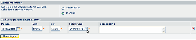 Dienstreise automatisch errechnet werden. Es werden die Zeiten aus den