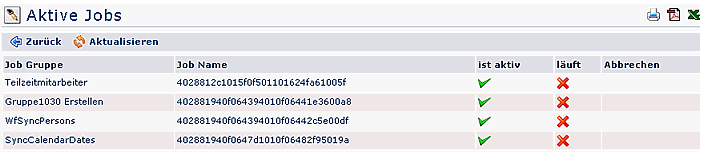 Handelt sich bei der angelegten Job-Konfiguration um einen aktiven Job (Trigger ist aktiviert), so kann dieser auch unter dem Menüpunkt Monitoring / Aktive Jobs eingesehen werden:
