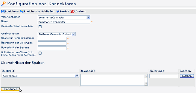 Liest Daten aus einem andern Quellkonnektor und gruppiert die Daten und summiert sie. Ein typischer Anwendungsfall wäre z.b., Reisekosten von Mitarbeitern flexibel nach Lohnarten zu gruppieren. |