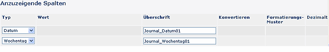 Jede Zeile in der Journal-Konfiguration entspricht einer Spalte im