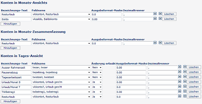 Im Buchungs-Client können diverse Zeitkonten als Info oder zur Unterstützung angezeigt werden.