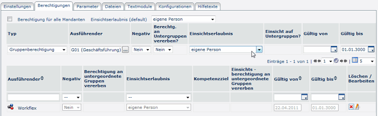 Die Einsichtserlaubnis gilt für die eigene Abteilung und ihr untergeordnete Abteilungen (Gruppen, ...), d.h. alle Gruppen, die hierarchisch darunter liegen. -