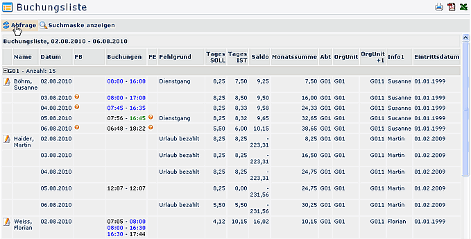 Duch einen Klick auf das Monatsjournal-Icon erhält der Vorgesetzte eine detaillierte Übersicht über das Monatsjournal des ausgewählten Mitarbeiters.