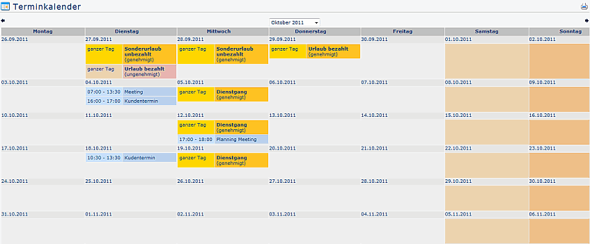 Fehlzeiten in einer Monatsübersicht an.