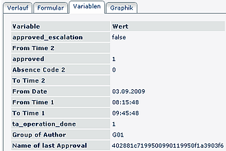 Here you will find the summary of all process-relevant data (from-to date, absence reason, somment etc.) -