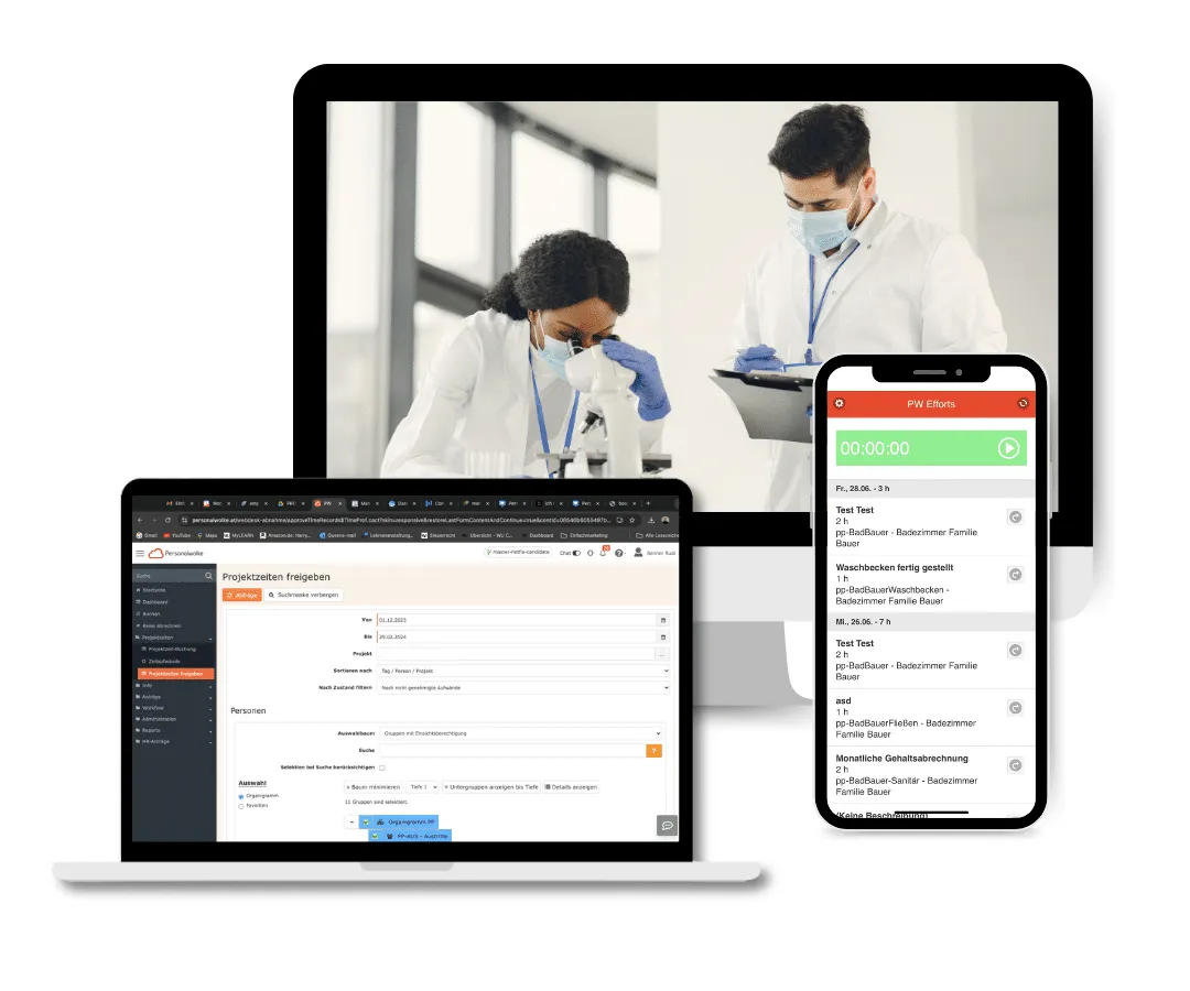 A relaxed start into digital HR: Our experienced HR experts handle the complete setup for you: Configuration of all relevant time models, Import of employee and organizational data, Transfer of current balances. With a 99% project success guarantee, we ensure a smooth and successful start into the future of digitalization with modern HR and time tracking software for medical technology companies.